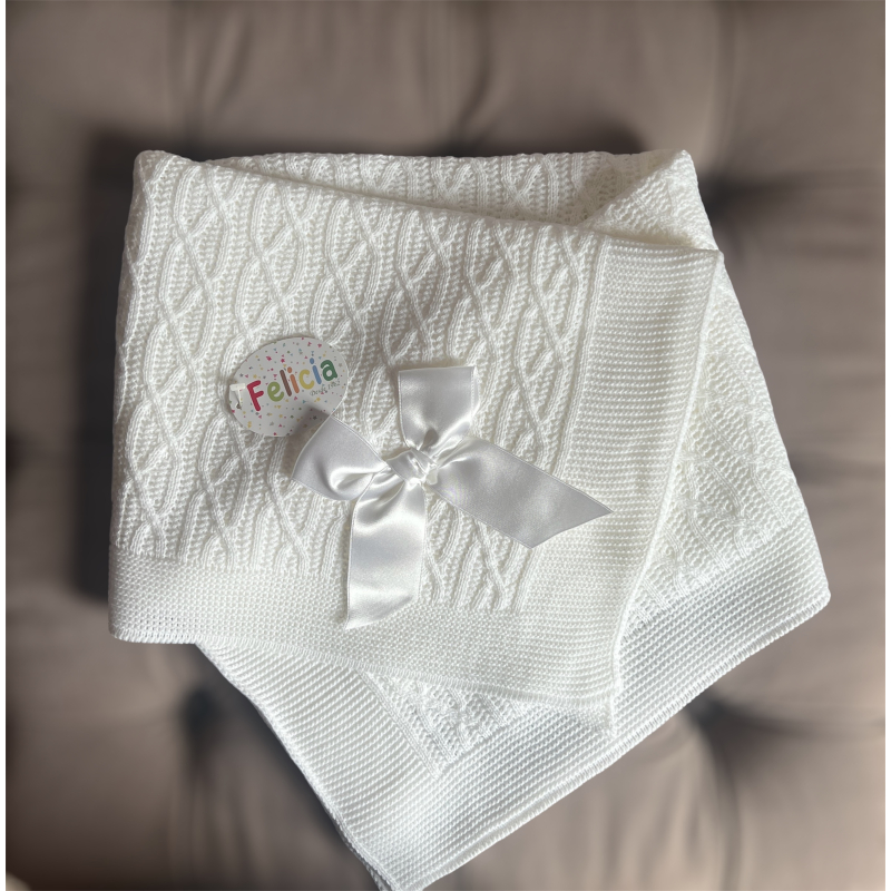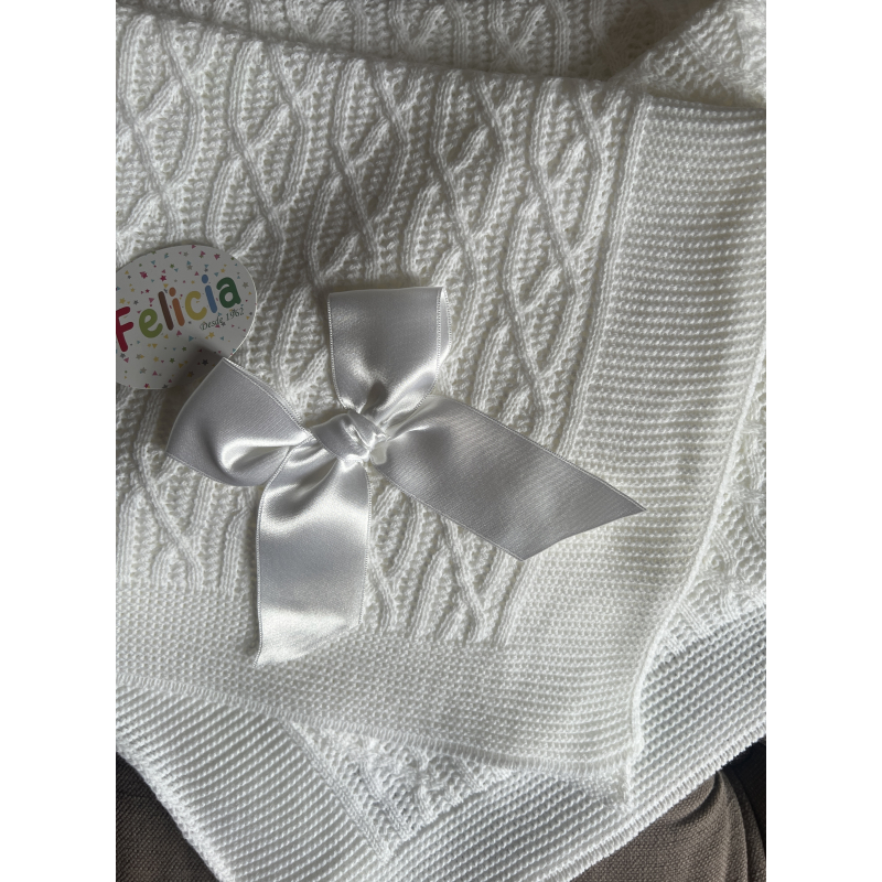 Gebreid dekentje met luxe strik.